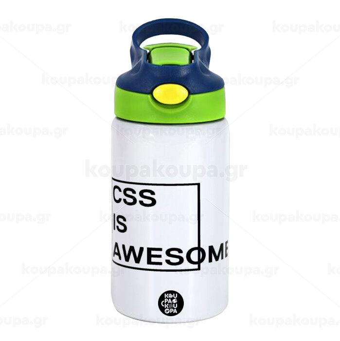 CSS is awesome, Children's hot water bottle, stainless steel, with safety straw, green, blue (350ml)