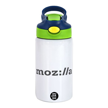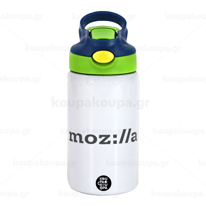moz:lla, Children's hot water bottle, stainless steel, with safety straw, green, blue (350ml)