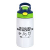 Be the girl who decided to, Children's hot water bottle, stainless steel, with safety straw, green, blue (350ml)
