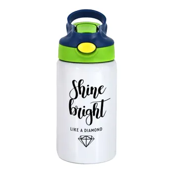 Bright, Shine like a Diamond, Children's hot water bottle, stainless steel, with safety straw, green, blue (350ml)
