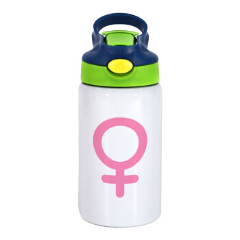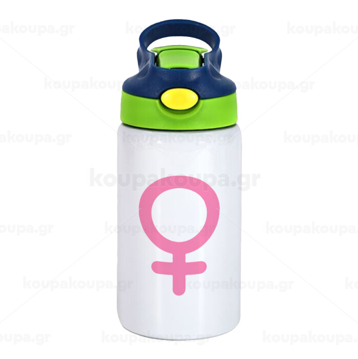 FEMALE, Children's hot water bottle, stainless steel, with safety straw, green, blue (350ml)