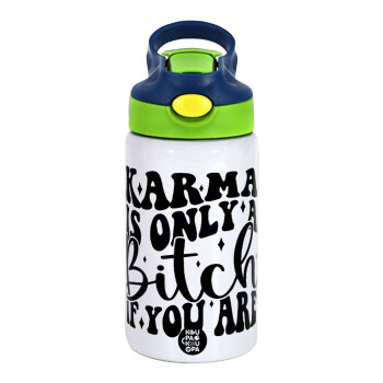 Karma is Only A Bitch if You Are, Children's hot water bottle, stainless steel, with safety straw, green, blue (350ml)