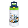 Life is a trip, Children's hot water bottle, stainless steel, with safety straw, green, blue (350ml)