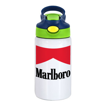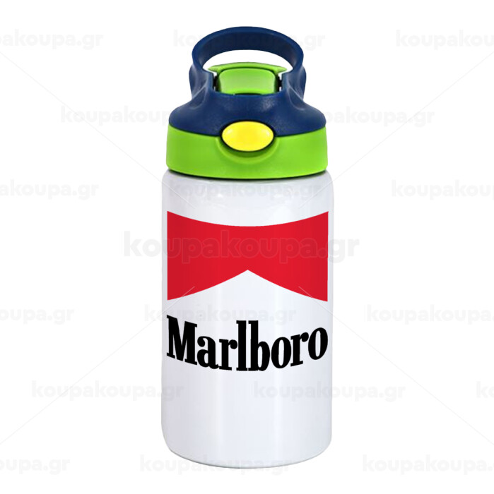 Marlboro, Children's hot water bottle, stainless steel, with safety straw, green, blue (350ml)