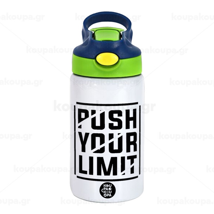 Push your limit, Children's hot water bottle, stainless steel, with safety straw, green, blue (350ml)