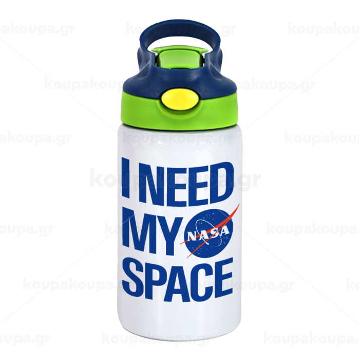 I need my space, Children's hot water bottle, stainless steel, with safety straw, green, blue (350ml)