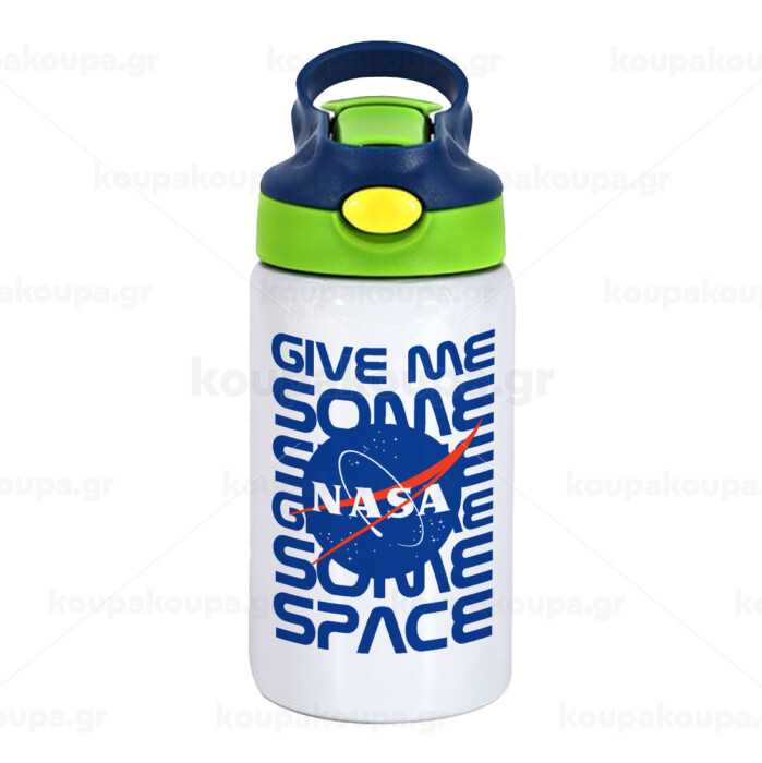 NASA give me some space, Children's hot water bottle, stainless steel, with safety straw, green, blue (350ml)