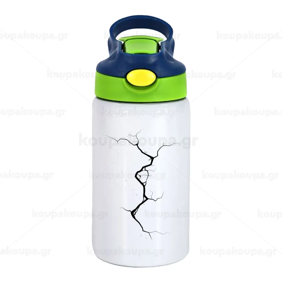 Cracked, Children's hot water bottle, stainless steel, with safety straw, green, blue (350ml)