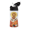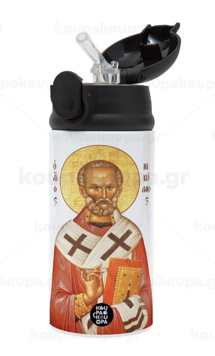 Saint Nicholas orthodox , Children's hot water bottle, stainless steel, with safety straw, Black (360ml) BPA-FREE