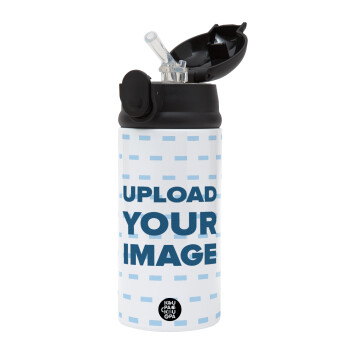 Upload your logo, Children's hot water bottle, stainless steel, with safety straw, Black (360ml) BPA-FREE