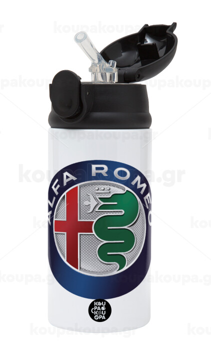 Alfa Romeo, Children's hot water bottle, stainless steel, with safety straw, Black (360ml) BPA-FREE