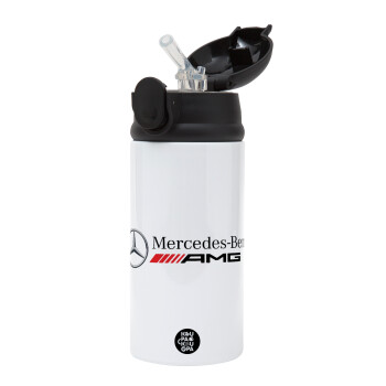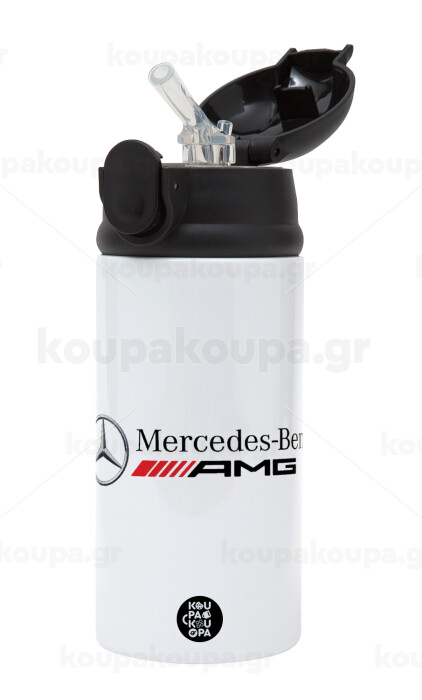 AMG Mercedes, Children's hot water bottle, stainless steel, with safety straw, Black (360ml) BPA-FREE