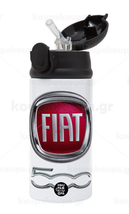 FIAT 500, Children's hot water bottle, stainless steel, with safety straw, Black (360ml) BPA-FREE