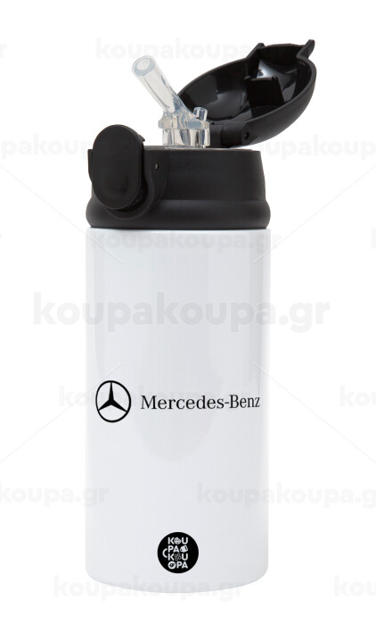 Mercedes small logo, Children's hot water bottle, stainless steel, with safety straw, Black (360ml) BPA-FREE