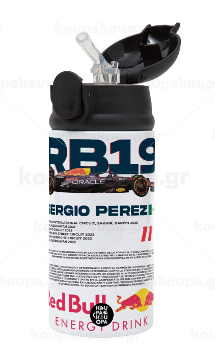 Redbull Sergio Perezi, Children's hot water bottle, stainless steel, with safety straw, Black (360ml) BPA-FREE