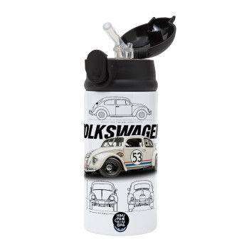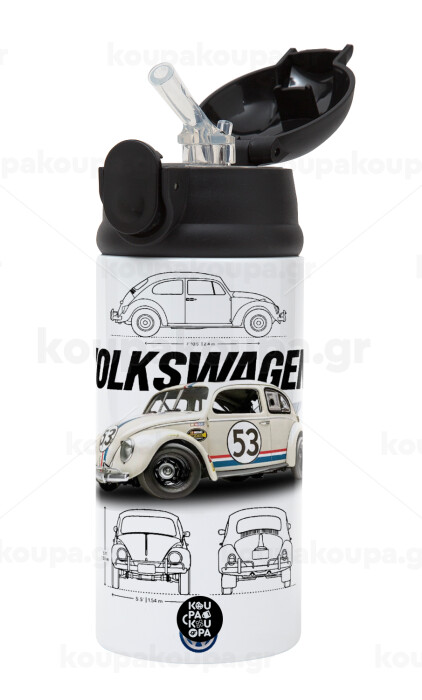 Volkswagen Beetle, Children's hot water bottle, stainless steel, with safety straw, Black (360ml) BPA-FREE