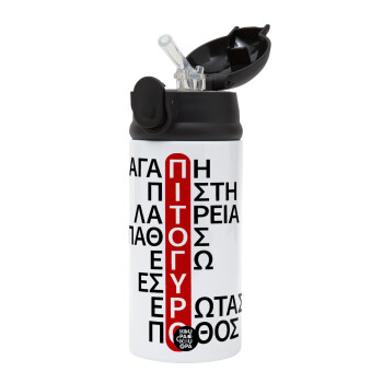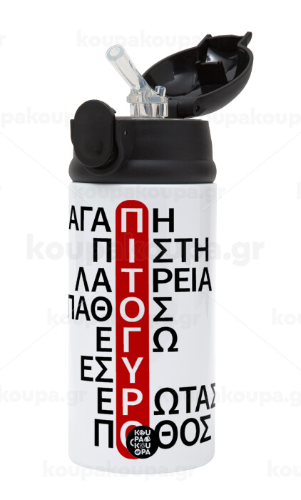 Πιτόγυρο πόθος, Children's hot water bottle, stainless steel, with safety straw, Black (360ml) BPA-FREE