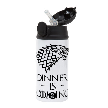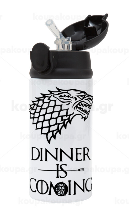 Dinner is coming (GOT), Children's hot water bottle, stainless steel, with safety straw, Black (360ml) BPA-FREE