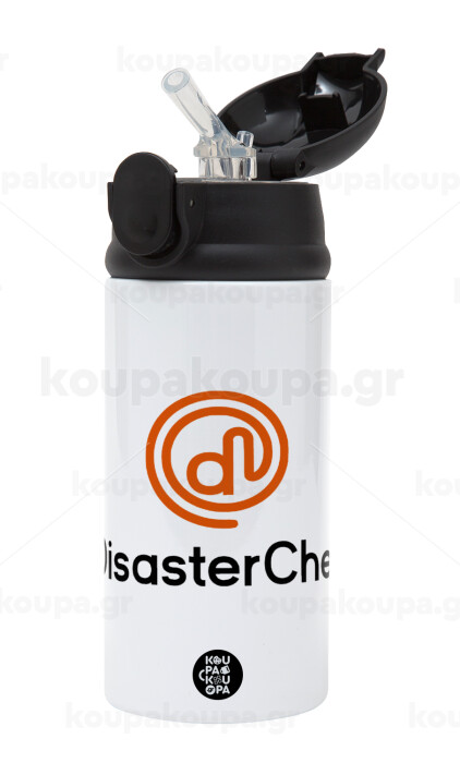 Disaster Chef, Children's hot water bottle, stainless steel, with safety straw, Black (360ml) BPA-FREE
