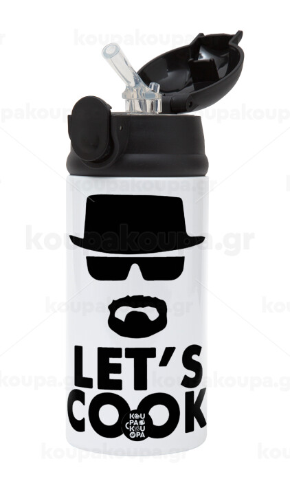 Let's cook, Children's hot water bottle, stainless steel, with safety straw, Black (360ml) BPA-FREE