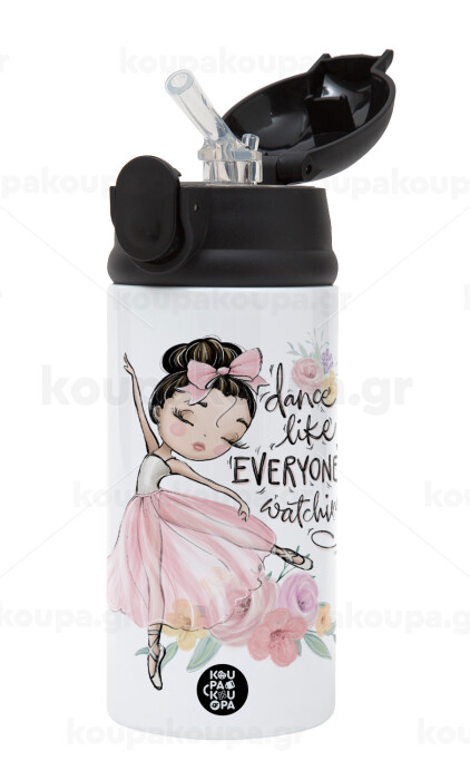 Dance Like everyone's watching, Children's hot water bottle, stainless steel, with safety straw, Black (360ml) BPA-FREE