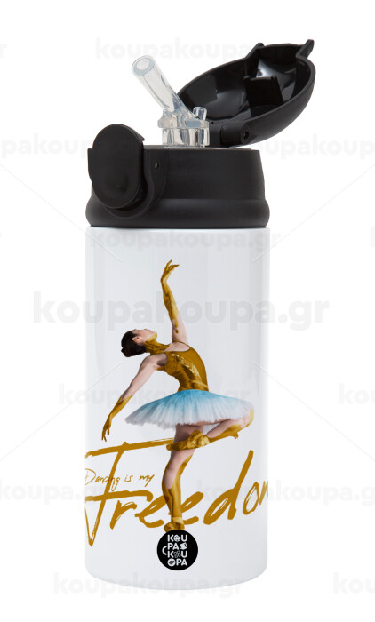 Gold Dancer, Children's hot water bottle, stainless steel, with safety straw, Black (360ml) BPA-FREE