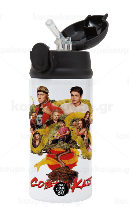 Cobra Kai tree, Children's hot water bottle, stainless steel, with safety straw, Black (360ml) BPA-FREE