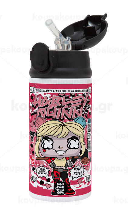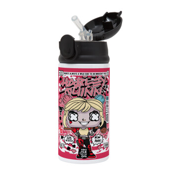 Harley Quinn (Χάρλεϊ Κουίν), Children's hot water bottle, stainless steel, with safety straw, Black (360ml) BPA-FREE
