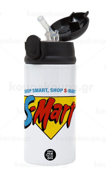 S-mart Evil Dead, Children's hot water bottle, stainless steel, with safety straw, Black (360ml) BPA-FREE
