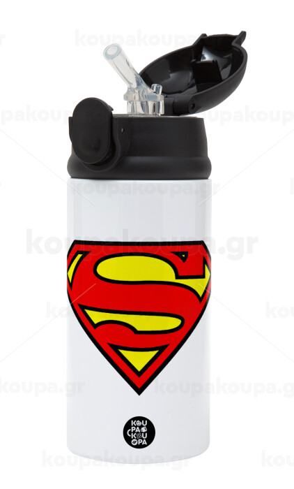 Superman vintage, Children's hot water bottle, stainless steel, with safety straw, Black (360ml) BPA-FREE