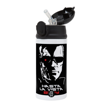 Terminator Hasta La Vista, Children's hot water bottle, stainless steel, with safety straw, Black (360ml) BPA-FREE