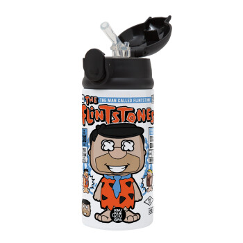 The flintstones, Children's hot water bottle, stainless steel, with safety straw, Black (360ml) BPA-FREE
