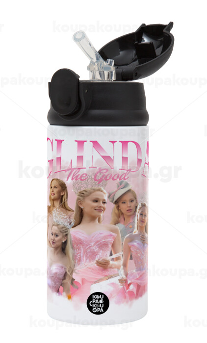 Wicked Glinda, Children's hot water bottle, stainless steel, with safety straw, Black (360ml) BPA-FREE
