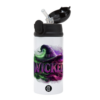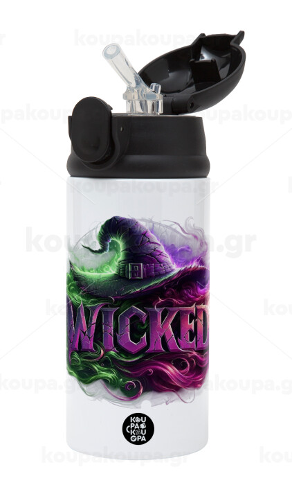 Wicked, Children's hot water bottle, stainless steel, with safety straw, Black (360ml) BPA-FREE