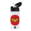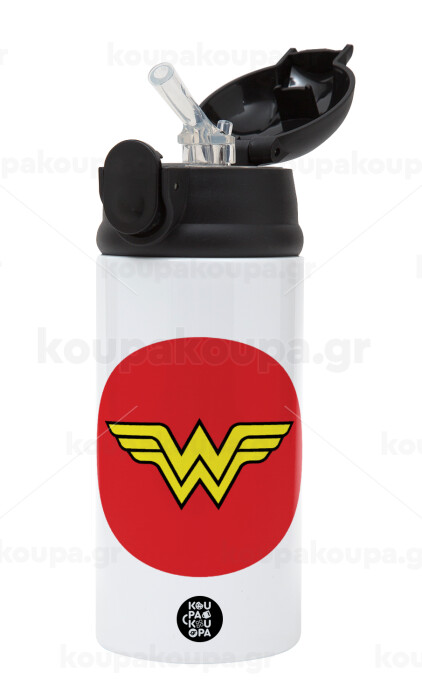 Wonder woman, Children's hot water bottle, stainless steel, with safety straw, Black (360ml) BPA-FREE