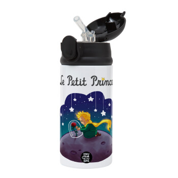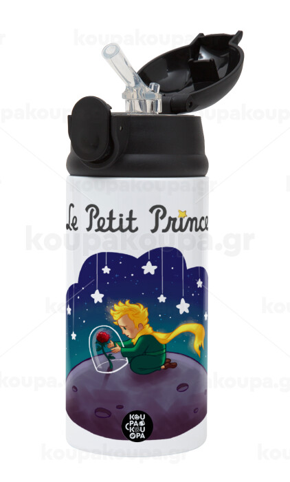 Little prince, Children's hot water bottle, stainless steel, with safety straw, Black (360ml) BPA-FREE