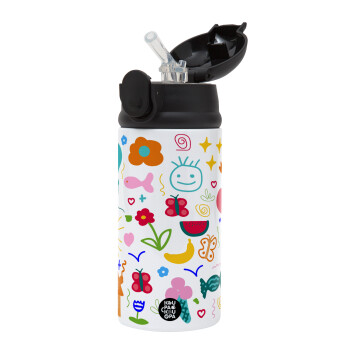 Παιδική φαντασία, Children's hot water bottle, stainless steel, with safety straw, Black (360ml) BPA-FREE