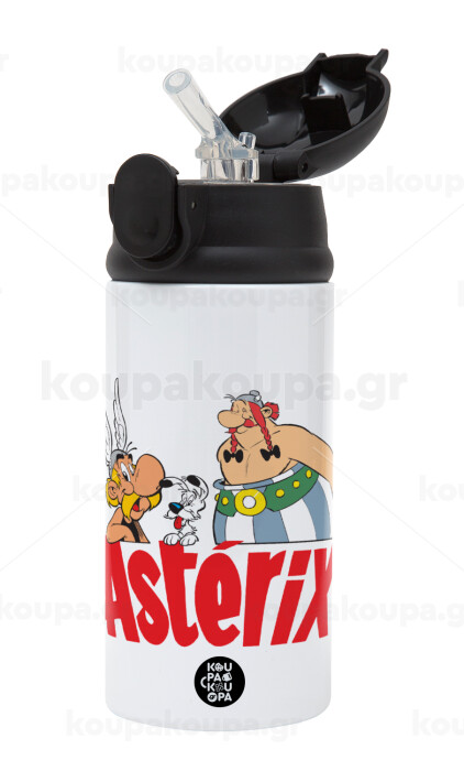 Asterix and Obelix, Children's hot water bottle, stainless steel, with safety straw, Black (360ml) BPA-FREE