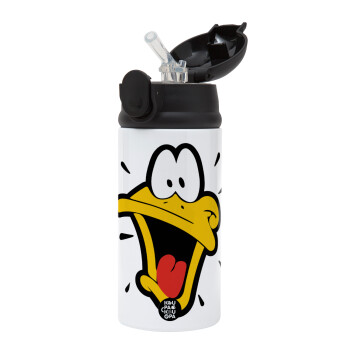 Daffy Duck, Children's hot water bottle, stainless steel, with safety straw, Black (360ml) BPA-FREE