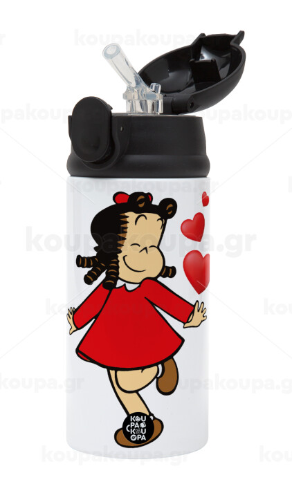La petite Lulu, Children's hot water bottle, stainless steel, with safety straw, Black (360ml) BPA-FREE