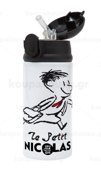 Le Petit Nicolas, Children's hot water bottle, stainless steel, with safety straw, Black (360ml) BPA-FREE