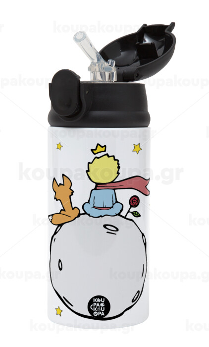 Little prince, Children's hot water bottle, stainless steel, with safety straw, Black (360ml) BPA-FREE