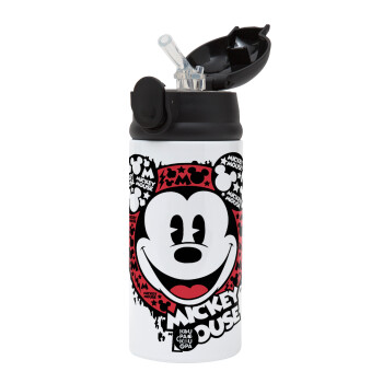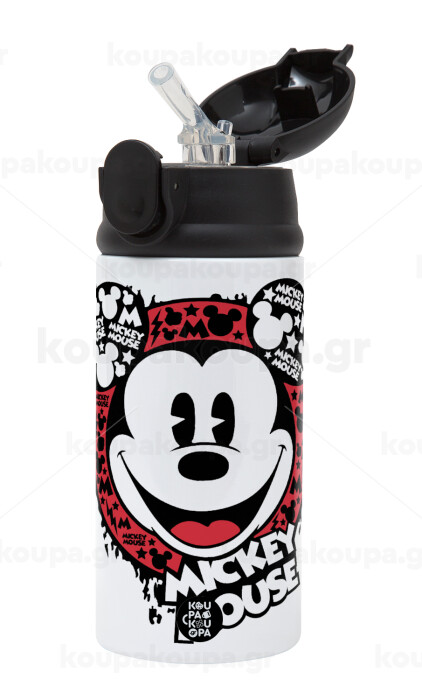 Mickey Mouse, Children's hot water bottle, stainless steel, with safety straw, Black (360ml) BPA-FREE