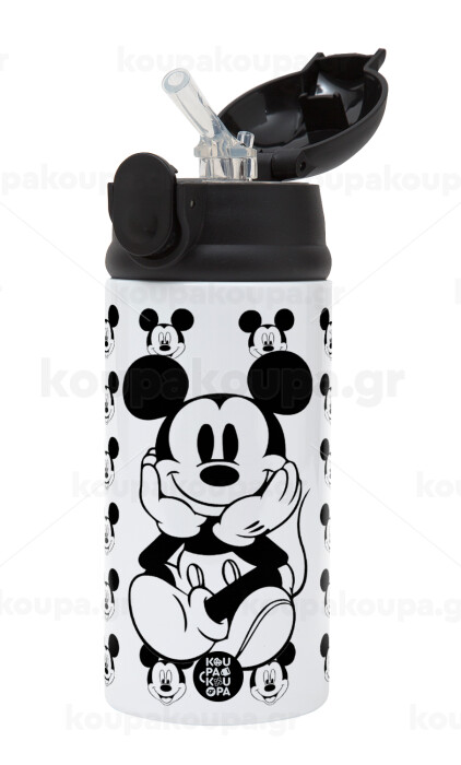 Mickey, Children's hot water bottle, stainless steel, with safety straw, Black (360ml) BPA-FREE