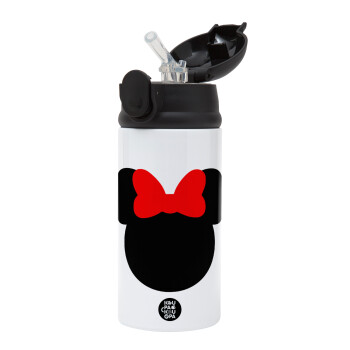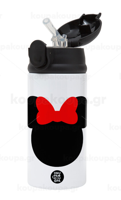 Minnie head, Children's hot water bottle, stainless steel, with safety straw, Black (360ml) BPA-FREE
