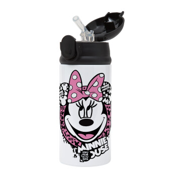 Minnie mouse, Children's hot water bottle, stainless steel, with safety straw, Black (360ml) BPA-FREE