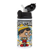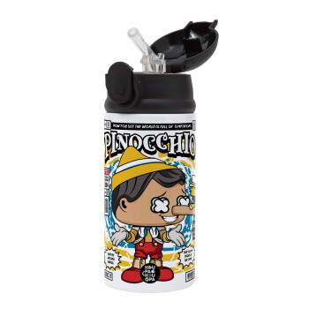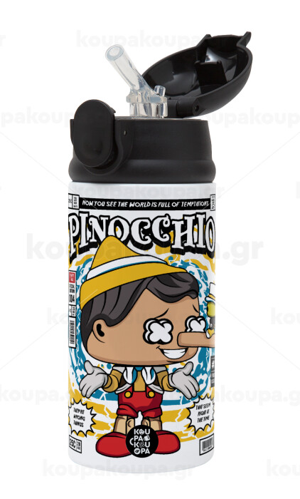 Pinocchio, Children's hot water bottle, stainless steel, with safety straw, Black (360ml) BPA-FREE