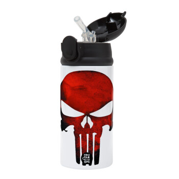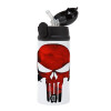 Red skull, Children's hot water bottle, stainless steel, with safety straw, Black (360ml) BPA-FREE