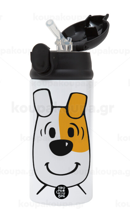 reksio bolek i lolek, Children's hot water bottle, stainless steel, with safety straw, Black (360ml) BPA-FREE