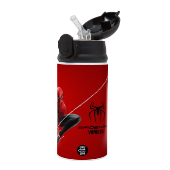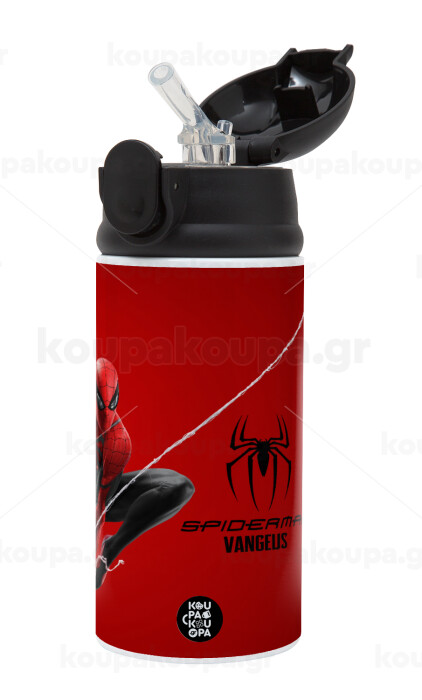 Spiderman, Children's hot water bottle, stainless steel, with safety straw, Black (360ml) BPA-FREE
